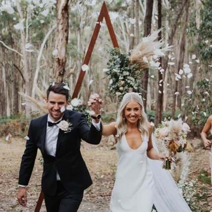 Family owned vineyard and winery on the edge of the Wombat State Forest. Established 1997. “Deliberately small, producing a premium product”. Wine by the glass, local cheese boards, with plenty of outdoor seating. Take away wine sales. Wine Tasting Experience resumed. Bookings preferred for our Seated Tasting Experience. Call 0427 249 344 to book. We were delighted to receive the Australian Good Food Guide Readers' Choice Award for 2023. A huge thank you to all our customers who took the time to vote for our family-run business. Thank you also to Whites and Woods for the wedding photo below, which was taken in our forest ceremony space.